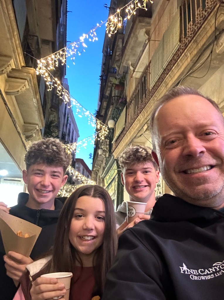 Day 1 – Our flight left Seattle at 2 PM on Thursday, November 20. It was a 10 hour flight from Seattle to Frankfurt, Germany, a 2-hour layover, then 2 more hours from Frankfurt to Barcelona, Spain. The Seattle airport was a breeze, and after lunch, we boarded our flight over Canada, Greenland, Iceland, the North Atlantic, and into Germany. We watched movies and napped, and Joel woke us up at one point so we could see the Northern Lights above Greenland. Absolutely stunning. Ellanora snapped some pictures of the sunrise over Northern Europe, and by the time we landed in Frankfurt, we were ready to stretch our legs (with plenty of yawns!).